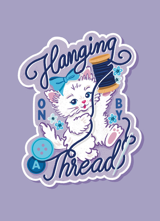 Hanging on by a Thread Kitten Sticker