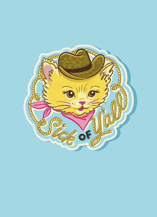 Sick of Y'all Cowboy Kitten Sticker