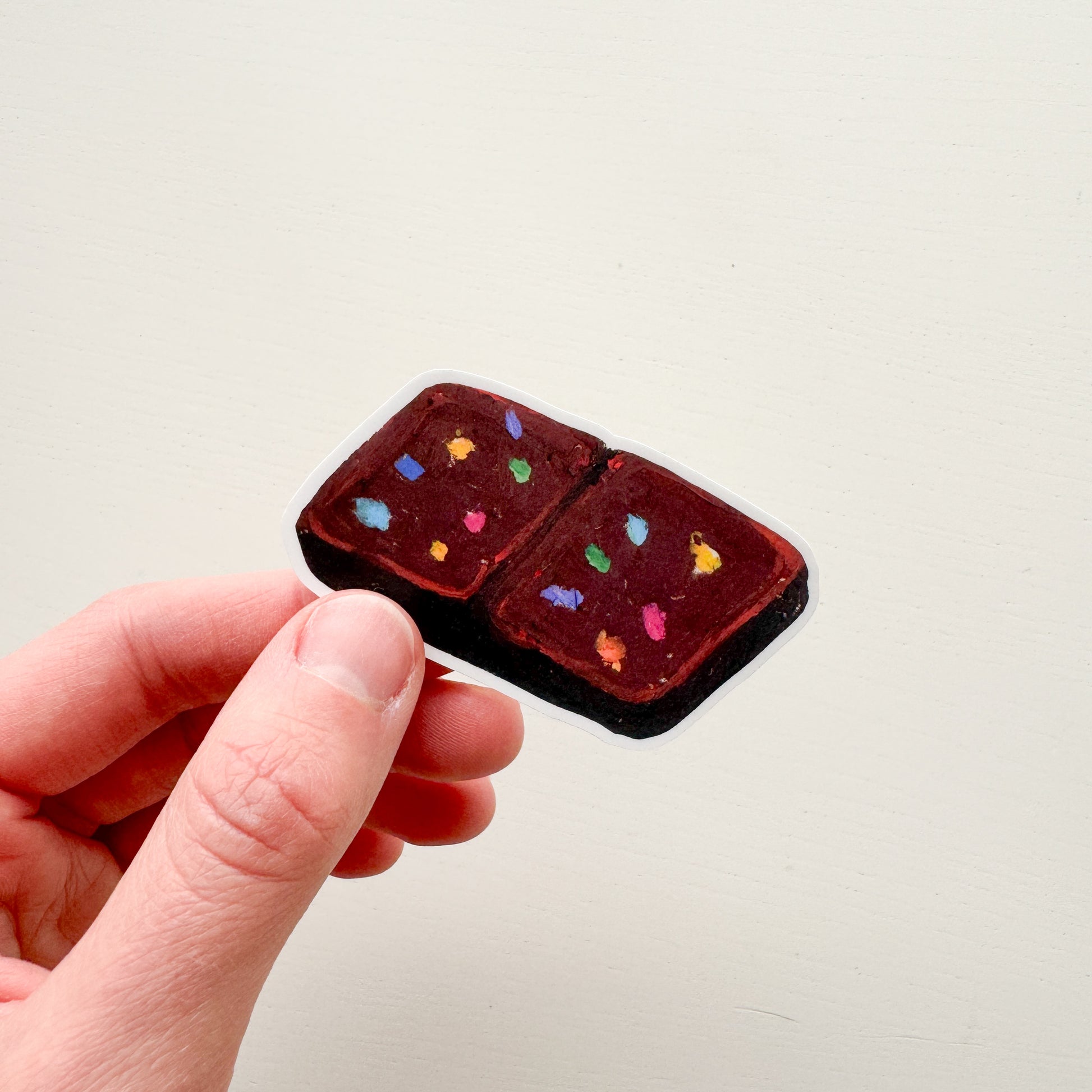 Printed on durable, weatherproof vinyl and laminated with a smooth matte finish, this Cosmic Brownie sticker is perfect for water bottles, laptops, phone cases, and journals, basically anywhere that could use a little pop of colour!
