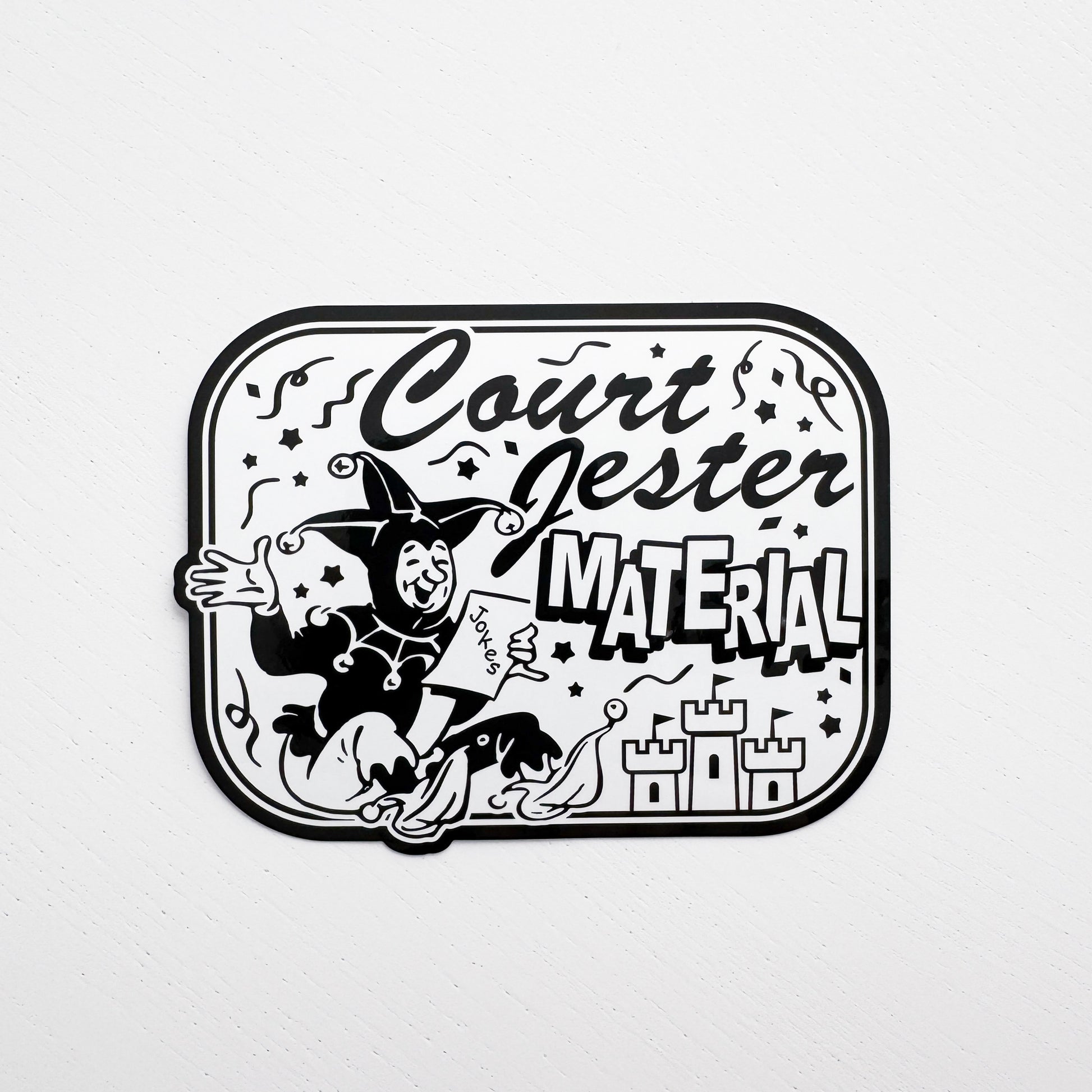 Hello, do you like merriment? Do you wish you had special protection to openly mock the king?? Then you may just be COURT JESTER MATERIAL. Heck, you do not even need to check those other two boxes, you just need to buy this sticker.