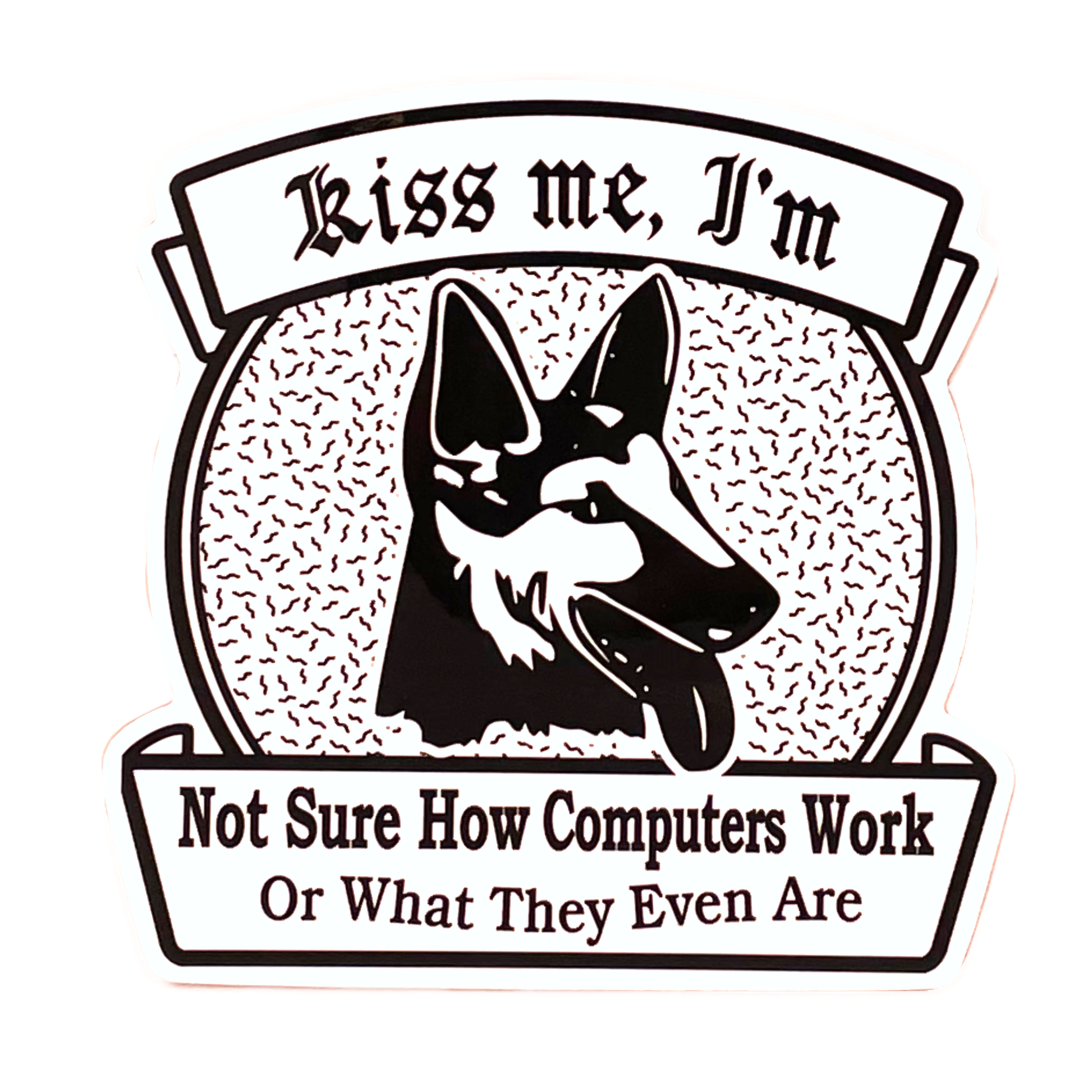 Computers: what even are they? Thinking machines? Portals to a world of information? Or garbage terminals connecting us to a shitty trash web? I don't know, and I don't want to. These stickers have a dog on them.