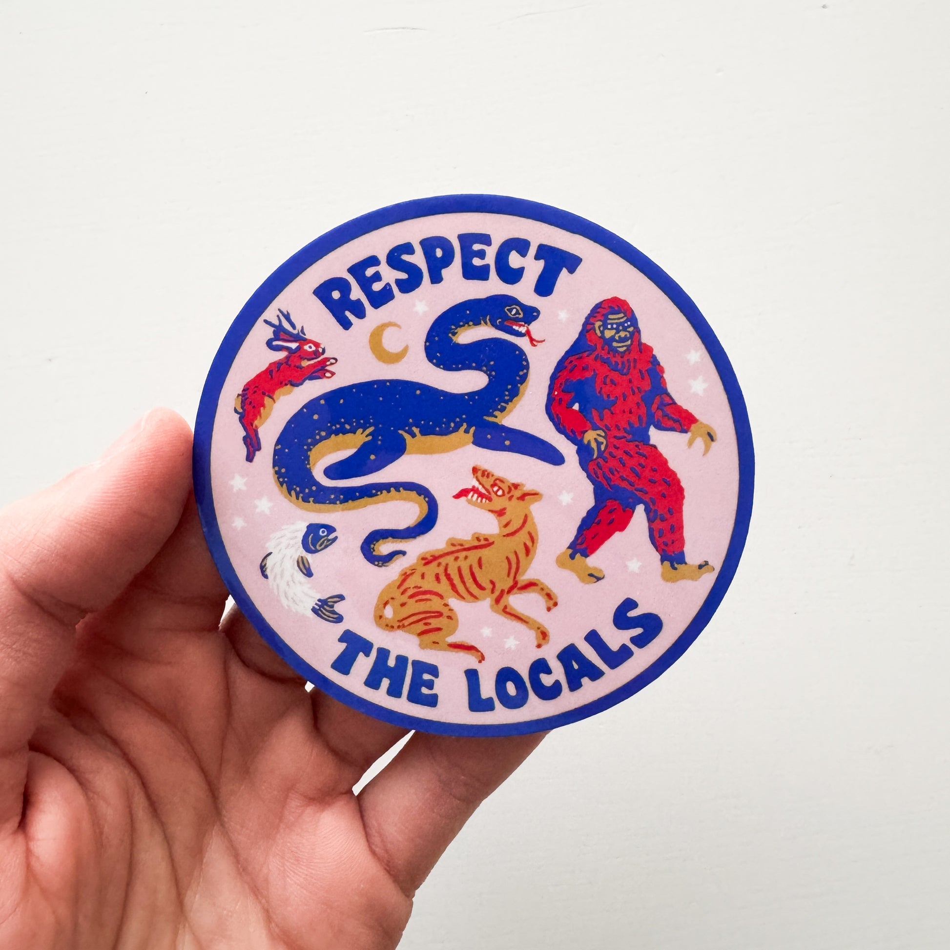 Support your local cryptid creatures with this colourful sticker, featuring Bigfoot, Cadborosaurus and the Chupacabra.